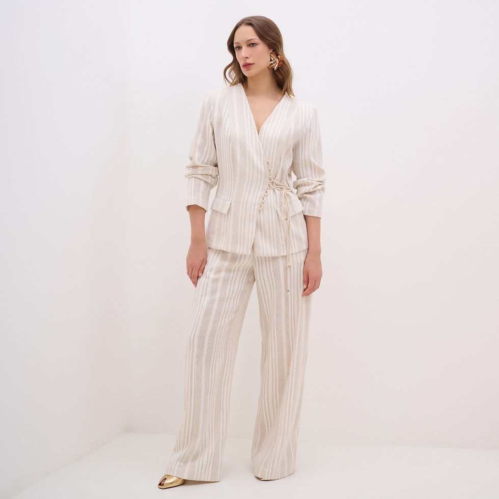 Blazer Linho Listrado com Rolete Rústico 26-006