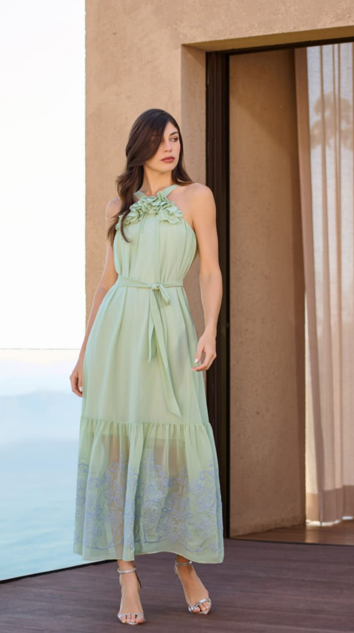 Vestido Sand Bordado com Cinto 25-1043